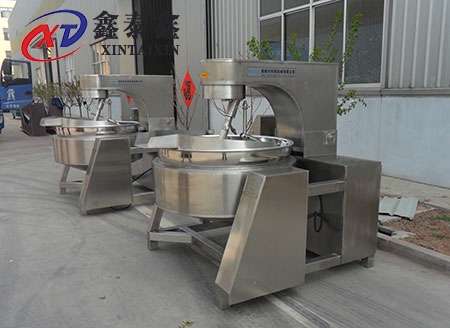 電加熱夾層鍋工作原理:鍋體為半球形不銹鋼鍋,一次性沖壓成型?;旌戏绞讲捎锰厥獾膬A斜傳動(dòng)。它是根據(jù)行星運(yùn)動(dòng)原理研制的,使攪拌器與罐體充分接觸,實(shí)現(xiàn)傳動(dòng)公轉(zhuǎn)和旋轉(zhuǎn)的非整數(shù)傳動(dòng)比。鍋中沒(méi)有混合死角。同時(shí),它還具有不粘鍋的特點(diǎn)。非常適合加工辣椒醬,電加熱夾層鍋具有加熱面積大、熱效率高、加熱均勻、液體沸騰時(shí)間短、加熱溫度易于控制、外形美觀、安裝方便、操作方便、保溫放心可信等特點(diǎn),防燙傷等。電加熱夾心鍋厚度可達(dá)4mm,廣泛用于各種食品的加工。也可用于大型餐廳或食堂的湯、煮、燉、粥等,是食品加工中提高質(zhì)量、縮短時(shí)間、改善工作條件的好設(shè)備